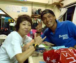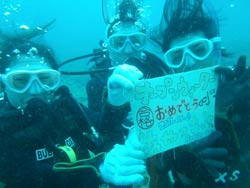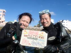 うぃす!タクです。天気よす〜な本日は、明日アップウェアリングが起きそうな砂辺で、体験ダイビングに行ってきましたーーー!!一緒に行ってきたのは、大阪からお越しの新婚カップルのタカさん&マリさん♪タカさんは15年前にグアムで経験有りとゆーことでしたが全然フツーに余裕で(笑)、マリさんは初めてダイビングでしたが、タカさんよりは上手く潜れると思っていたようでしたが緊張するとゆ〜感じで・・・(笑)でも後半からは慣れて、一緒に写真撮ったり、結婚祝いのサプライズもできました!喜んでもらえて何よりです★☆ではでは最後に、2人の感想も載せまーーす!! タカさん★今日は15年ぶりのダイビングやったけど、めっちゃ楽しめました。インストラクターのタクさんは面白いし、しゃべりも上手いし、また親切に指導してくれて頼もしかったです。サプライズで結婚のお祝いもしてくれたし、バブルリングもすごくてびっくりしたし感動しました。他のスタッフも皆笑顔迎えてくれたし、ええ人ばかりでした。ホンマありがとうございました!! マリさん★タクちゃん、ありがとうございました!!タクちゃんのおかげで楽しい初ダイビングをすることができました。初めはドキドキして緊張して、ムリかなと思ったけど、タクちゃんの優しい指導と面白いしゃべりと笑顔で勇気づけられ無事に終えることができました。とっても楽しくて海もキレイでほんと良かったです。新婚旅行のサプライズもあり、とても良い思い出になりました。ありがとうございました!! |