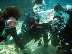 はいさ〜〜い、せーやです!!今日の最後にきてくれたのは、元気がありすぎるピチピチの富山県女子の4人組みでした〜〜☆とにかく元気だったのでダイビングの説明を聞かないと思いきやみんな真剣に聞いてくれて頑張って練習してました!なので入るときも少し緊張してたけど、すぐに水に慣れて深いとこまで泳げましたね^^みんなから感想もいただいたのでのせていきまーす! まーや「楽しかった〜〜いろんなものに触れた!プニュプニュしてた〜〜ちょーーいい思い出になった!またしたい☆」 ななしょん「・ちょーたのしかったです・魚も海もちょーきれいだったです。・一生の思い出になったよ・また沖縄に行きたくなったよ・友達におすすめしたいよ・耳もいたくなったけど、ちっこももれそうになったけど、全然泳げなかったけど、くそおもしろかったよ・かいかいありがとう・せいやっちいけめーーん!!」 なっつん「とっても楽しくて感動した!!テレビで見ていた世界ですごかった。かいかいとせいやっちも優しくて面白かった。一生の思い出になった。また絶対にやりたいです☆」 ぞうちゃん「今日は久しぶりのダイビングができてとてもやかったです。ナイトダイビングやもっともっと深いところまで潜りたいと思いました。」 |