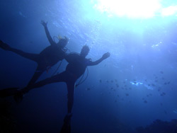 どうもです。久しぶりにケラマファンダイブです。天気が良くて結構最高でした。運瀬にアタックしましたが・・・流れが凄くて断念・・・その後久場島へ、久場西の隠れ根は、めちゃめちゃ透明度もよく、最高です。メンバーは、初ドリフトのおやじっぽいりえちゃんと、ドキドキダイブのわいちゃんとおおはしゃぎ娘のみゆきちゃんです。キンギョハナダイやアカモンガラが綺麗でした。ピグミーシーホースわかった?2本目は、阿嘉島へ移動して、タートルベイではハゼ類を探しながら、スカシの根まで泳ぎました。ユカタハタなど結構綺麗だよね。3本目はシークレットケーブへ、穴をくぐり、穴をくぐり、穴をくぐりののんびりドリフトダイブです。エントリーしてすぐに潜れるように、これからもしっかり練習して、かっこいいダイバーめざしてね。ケラマ3ボートお疲れ様でした。 |