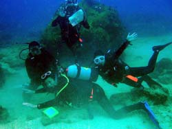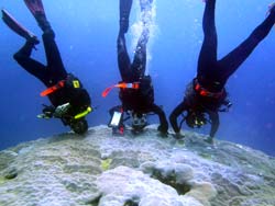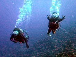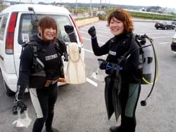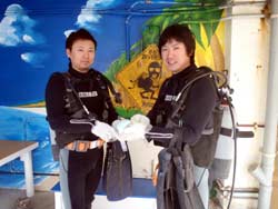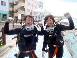 こんにちわJackです☆今日は、なんとも暖かいですよ!沖縄!!まさにダイビング日和の今日は真栄田もオープンしていまして、体験ダイビング&スノーケルに行ってまいりましたぁ!!一緒に潜ってくれたのは千葉からお越しのアキコさん・マキちゃん・ユウコさんの3人でーす!!まずスノーケルは、岩場をテクテク探検隊のように洞窟を目指しレッツゴー!!洞窟もすいてるし青もキレイだったし最高でしたね♪ダイビングも青の洞窟を目指して行きました!スノーケルとは、また違ったキレイさにみんな感動してましたね!!そんな3人から感想いただきましたぁ♪ ユウコさん:今日はありがとうございました。ダイビング初めてで海とお魚はキレイだったけど、こわくて大変でした。シュノーケルだったら、またやりたいです。 マキちゃん:初ダイビングだったけど、すごーく楽しかったです。また入りたいです。最初は緊張して息も出来なかったけど一緒に入ったインストラクターさんのおかげで楽しくできました。海もキレイだし魚もかわいいし、はまってしまいそうです。2年たったら免許とりにきます。 アキコさん:楽しかったです!また来たいです。水もキレイだし…魚もたくさん見れて良かったです。 |