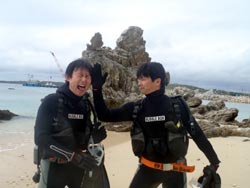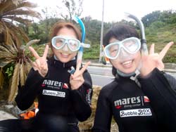 まいど〜ひろあきです!!冬休みから帰ってきて元気100倍です。。さてさて今日の沖縄は朝から絶好調!!天気も良くて気温もなかなか暖かいです!今半袖です!!さすが沖縄!!ということで今日は急遽体験ダイビングの申し込みがあったお2人と一緒にマエダ岬で潜ってきました!ひろこちゃんとにっしーの2人です^−^2人は昨日も座間味で体験ダイビングをしていてかなり余裕に水中世界へ入っていきましたよ〜!!この時期のマエダは人も少なくて透明度もグ〜です!!魚もグイグイ寄ってきます。青の洞窟は終始貸切状態でキレイな青を楽しめました☆途中からは完全に自分達で泳いでた二人!次はライセンスでもとっちゃってください^−^今日はお2人にコメントをもらっています。 |
