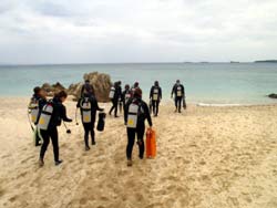 はいはーい!ども、りょーけんでっす。今日は体験ダイビングに行ってきました〜!今回のゲストは井畑さん、長瀬さん、瀬波さん、辻さん、伊藤さん、平山さん、木下さんの7名!!このメンバーで海の中を遊びまわってきました〜。ちょっと耳抜きが苦手な感じの人もいましたが、無事全員水中で集合することができましたね!クマノミを見に行ったり、ナマコで遊んだりした後魚に餌付けもやりましたね。今回みんなからコメントをいただいているので掲載します。 井畑さん:楽しかったです!!さむい!!でも楽しかったです。 長瀬さん:初めてのダイビングでしたが、とても楽しく参加させて頂きました。とてもキレイな海の景色に大満足です。 瀬波さん:めちゃくちゃ楽しかったです!寒い!気づいたらナマコやらヒトデが付いててびっくりしました。 辻さん:初めてのダイビング体験をここでできてよかったです。とても丁寧に教えていただいてめっちゃよかった。」ダイバーさんも面白くて楽しかった。また、したいと思えました。沖縄のうみめっさキレイ。 伊藤さん:すっごく楽しかったです。こんなにすぐ出来るとは思ってなかったので、体験で来てよかったです。インストラクターさんたちみんな優しいし、面白くてよかった!!より楽しめました。でもサムイー!!次は夏に☆ 平山さん:めーっちゃきれいで感動しました!リアルにも感激!!インストラクターさんたちも親切で、安心して初ダイビング楽しめました!! 木下さん:ほんまめっちゃ楽しかったです。沖縄の 海&人ステキ!サイコー!また絶対きます!! 今日はありがとうございました。次はあっつい夏に潜りに着てくれるのを待ってますよ〜!! |