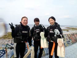 こんにちわJackです☆今日は体験ダイビングで砂辺に行って来ましたぁ〜^^♪一緒に潜ってくれたのは埼玉からお越しの仲良し3人組の、さいきちゃん・きょんさん・とく子さんの3人でーす☆きょんさんは2年前にOWをとっていて久しぶりのダイビング!!さいきちゃん&とく子さんは初!!ダイビングってことで、ゆったりのんびり潜って来ました!!3人から感想を頂いたので載せたいと思いま〜す^^☆ |