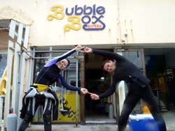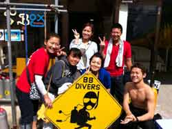 はいはーい!ども、りょーけんでっす。今日は体験ダイビングに行ってきました!今回のゲストは卒業旅行で沖縄に来たしばやん、いっしー、ノム、ハラケン、おかもっちゃん、ぺんぎん、えぐっちの7名!!このメンバーでゴリラチョップの海を遊びまわってきました〜。ほとんどの人が初ダイビングで緊張していましたが、ゆっくり練習してから潜ったので全員楽々と水中へ移動できましたね!水中では魚への餌付けや、奇妙な形の岩を見に行ったり、クマノミを見たりと色々やってきましたね。今回みんなからコメントを頂いているので掲載します! しばやん:くもりで少し雨が降っている時でもインストラクターさんの言うように、水中は暖かく丁寧な引率だったので、全力でダイビングを楽しめました。水族館で見られるような魚達をじかに見れて感動しました本当にありがとうございました。 ノム:バブルボックスのダイビングは凄く親切で楽しかったです。初めての沖縄で最高の思い出が出来ました!わからないことはインストラクターの方が全て教えてくれるし、安心して海の眺めを楽しむことができました。またいつか沖縄に来たらバブルボックスでダイビングしたいと思います。 いっしー:丁寧に説明してもらい、初めてでしたが安心して出来ました。はるか上に水面がある光景は初めてだったので、とても面白かったです。 ハラケン:25mも泳げなかった自分ですが、楽しんでダイビングする事ができてよかったです。今回は残念ながら天候に恵まれなかったので、次回ダイビングヲする機会があったときにはいい天候になるように祈りたいです。 おかもっちゃん:人生初のダイビングでした。とても面白かったです。雨でしたが、海の中は荒れてなくて、たくさんの魚と触れ合えてクマノミを見れたのが良かった。また、やりたいと思った。 ペンギン:ダイビングヲするのは初めてで少し怖かったですが水中の生き物をまじかで見ることが出来てとても楽しかったです。 えぐっち:雨の日で風が強く、気温も低かったですが、海の中に潜れば穏やかなサンゴ礁や熱帯魚がたくさん見れました。沖縄の海のキレイさを実感しました。晴れの日にもう一度してみたいです。 以上です!!みんなまた沖縄に来る機会があったら次回は青の洞窟へのダイビングにリベンジしてみてね!待ってますよ〜!! |