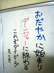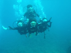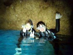 どーもーー、切り込み隊隊長タクでーーす!!天気は晴れ、俺の心も晴れ、そして飛び入り参加の石井さんファミリーと一緒に体験ダイビングに行ってきました。今回は前兼久のボートから青の洞窟へ♪♪お父さん、ミノリちゃんのお2人はよく頑張ったと思います、ホントに!!カリナちゃんは最初だけだったかな?後からは全然よゆ〜だったね。洞窟もキレイで写真もたくさん撮りました!次回はまた違った場所で潜ってみてくださいね^0^最後に感想を載せます。 お父さん:始めてのダイビングどうなるかと、パニック状態でした。タクさんのおかげで、だんだん慣れてきて潜ることができました。次回また来た時はコツがわかったような気がし、海中では魚達の群れや、晴天だったので青い洞窟の神秘さが見られました。貴重な体験どうもありがとうございました。タクさん、ユウキさん、親切な指導のもとで楽しく体験ダイビングできました。又、次回来た時も経験したいと思います。 カリナちゃん:超キレイでした☆お天気もすっごく良くて楽しかったです!!洞窟も本当に青くて魚もいっぱいだったし、潜れてすっごく幸せです!!!最初は呼吸が難しくてちょっと不安だったけど慣れたら呼吸もしやすかったし周りもちゃんと見れるようになったから良かったです!!!また絶対やりたいです♪ ミノリちゃん:最初はすごく不安でいっぱいだったけど、ユウキさんが優しくリードしてくれたおかげで楽しくダイビングすることができました。青の洞窟もすごくキレイで、来て良かった気分になりました。ちょっと寒かったけど本当に楽しく、おもしろかったです。 |
