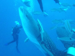 はいさい!!ひろあきです!!今日は午後から久ぶりにジンベイダイビングに行ってきました^−^遊びに来てくれたのは、僕の遠い親戚のマサキくんとそのお友達のタケちゃん!!マサキくんは初ダイブに挑戦!!タケちゃんは2回目のダイビングに挑戦です!!今日のボートの上は小さな子供から外人さんまでたくさんいて賑やか!!説明をしっかり聞いてもらいいざ出航!!ボートがかなり揺れたので船酔いとの闘いでしたが、2人とも元水泳部という事もありかなり余裕で水中の中に入れました^−^透明度もよかったのですぐにジンベイがお出迎え☆しかも3匹も!!マサキくんは大興奮でしたがタケちゃんは、吐き気との闘い((笑)でも目の前で餌付けをしてもらって楽しめたのでは??今日は2人からコメントをもらっています☆ マサキくん:すごく親しみやすい指導で安心してダイビングできました。これだけ安心感があるとまた利用したいと思います。 たけちゃん:ジンベエザメが本当に間近で見られ、とても感動しました。吐いてしまったときなど、優しくフォローして頂き、本当に安心してダイビング出来ました。ありがとうございました。 こちらこそありがとうございました^−^また沖縄に来た時は是非遊びに来てね〜☆★ |
