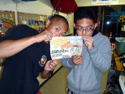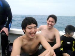 13:00体験☆松浦さん 勇平くん☆2回目のダイビング最高でした。また沖縄に来たらバブルボックス遊びに来ます。 智彦くん☆海の底はキレイだったし、飛んでいる気分になれた。魚にエサをやるのが面白かった。 寿浩くん☆天候が良くなかったけれども、海の中はキレイで魚も見た事のない種類のものもいてとても幻想的でした。また是非来たいと思います。 薫くん☆初めてのダイビングでしたが、インストラクターの人が適切にアドバイスをくれてすごい良かったです。また来たいです。 |