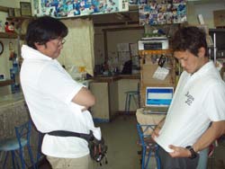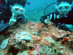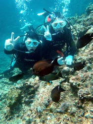 はいさ〜〜い、ともだよ。今日はお花畑でニモに会おう、体験ダイビングBコース担当です。参加してくれたのは、広島からのイケメンオヤジ2人です。少し波がありましたが、がっつり潜ってきましたよ。2人共凄く上手くて、手放しでスイスイ泳ぎました。二人のコメントは?「ニモがとっても可愛く体験ダイビンでしたが凄く楽しかったです。 46歳男ですが又来ます。絶対来ます。ありがとうございました。K、Dさんと魚を捕まえることが出来なかったので次は必ず!!!また遊びに来るのでよろしくお願いしますね。S、Kさんです。2人ともとっても丈夫だったので次回は青の洞窟かライセンスゲットで楽勝ですよ。待ってますね。 |