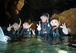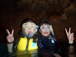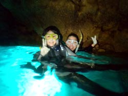 はいさ〜〜い、鼻矢印のせーやです!!今日は真栄田岬からのエントリーができず、港からのボートで青の洞窟を目指しました〜〜!一緒に潜ってくれたのは、北海道からお越しの工藤さん家族☆お父さんは海が苦手みたいでダイビングは休憩です。なので3人で潜ってきました。最初は緊張していて水面でもとっても怖がっていたんですが、海に入ったらみんな上手に泳いでましたよ☆青の洞窟も人が少なくみんなでゆったり見ることができました!餌付けしてる時は、ホントに多きい魚達に囲まれてびっくりしつつも喜んでいました。特にお母さんはダイビングの楽しさをほんとに知ってしまった感じでしたね!そんなみんなからコメントもいただきました〜。 康次郎くん☆沖縄2回目のダイビング!ということで青の洞窟に行ってきました♪入って行く時は暗いなぁーって思いましたが、奥に行って振りかえったら深いブルーが見えました!想像通りキレイなブルーで大満足です!ありがとうございました。 健太郎くん☆曇りだったので次は晴れの日に再挑戦したいです。 |