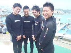 わっしょーい!タクですよ〜〜〜。今日も大学生の団体さんが来てくれました♪緊張してる人、スーツの着かたを間違えた人、鼻血が出た人・・・。いろんな人がいたけど、皆でワイワイ潜れて良かったね♪♪皆から感想いっぱいもらってるので、載せます! 宇野☆海に行く前にトイレには絶対に行きましょう。じゃないと楽しめないよ!! ツボ☆夏にはライセンス取って来ます。 てつや☆今度こそ海に潜るときは快晴を望む。 りょう☆次はウニ掴みたいです。 けんじ☆水族館とは比べものにならない魚とのキョリ感がいいのさ。 コメ☆良いインストラクターさんに恵まれ、楽しくできました!! つばさ☆海が荒れてて大丈夫かなと思ったけど、結局楽しめました! |