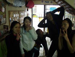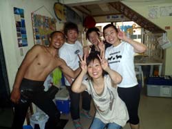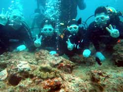 はいさ〜〜〜い、鼻矢印のせーやです!!今日は朝はいい天気でしたが、午後から曇ってきてそれから雨まで降ってきちゃいました。。。そんな午後から元気な団体7人組が来てくれました☆6人はダイビング経験者で1人だけ初体験ダイビングでした。経験ある方はやはり最初も緊張せず潜っていけました!ない方は最初緊張してしまいちょっと遅くなりましたが、あとからすぐに合流できました♪みんなでニモのいるとこで記念撮影〜〜!そんなみんなから代表して何人かからコメントいただきました。 「また沖縄来たらぜひやりたいです!!」 「柔らかサンゴはサイコーでした。楽しかった!!」 「サンゴの柔らかいものは初めてでした。」 |