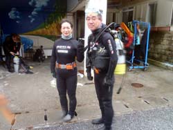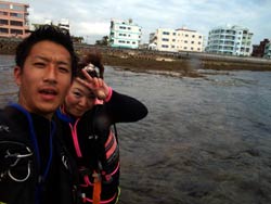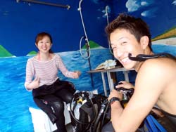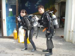 はいさい!本日、午前ニモに会いに行こう体験ダイビングに参加してくれたのは湘南から遊びに来てくれた仲良し夫婦のマサユキさんとユキコさんです。2人は以前洞窟シュノーケルをやって今回はこれはいけるぞ!って事で体験ダイビングに挑戦です。マサユキさんはサーフィンもやっているのでかなり余裕です。ユキコさんは水が嫌いでドキドキされていましたが、ゆっくり陸練と浅い場所での練習でかなり余裕になりました。そんな2人からコメントは 「楽しかったですよ。初めてだったけど、安心してリードをお願いして海の中の生き物を楽しんで見れました。ありがとうございました。」 コメントありがとうございます。水中写真や水中ムービーもたくさん撮ったので帰って皆に自慢してくださいね。またのお越しをお待ちしていますね。 |