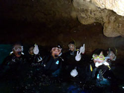 はいはーい!ども、りょーけんでっす。今日の午後からスノーケルに行ってきました〜!今回一緒に海に遊びに行ったのは高校からの仲良しグループの荒井、安藤、ハルカ、エリナの4名!このメンバーで青の洞窟まで遊びに行ってきました!初めての沖縄の海のキレイさににみんな驚いてましたね〜。ナマコやヒトデ、コクテンフグを水中から撮ってくるとすかさず記念撮影して遊んでいたらあっという間に洞窟へ!洞窟内では夜行性のアカマツカサやリュウキュウハタンポを見たりしながら洞窟の一番青い所へ!目を開けた瞬間に見えた一面青の世界はとてもキレイでしたね〜。帰り道はどしゃ降りになってましたが、お構いなしに魚に餌をあげたりしながら遊んできました!今回皆からコメントを頂いているので掲載します! 荒井:初めてのスノーケルしました。思っていたよりも簡単で楽しかったです。ガイドの方も親切で心配なく出来ました。またやってみたいです!! エリナ:青くてすっごくキレイでした〜!!!全然泳げないのですが安心して出来てとっても楽しかったです。今度はぜひダイビングにチャレンジしたです! 安藤:想像以上でした!!あんなに青く光っていると思わなかったです。洞窟のほかにも色々説明があったり楽しませていただきました。 ハルカ:初めてのスノーケルでしたが、すごく楽しかったです。魚もたくさん近くで見れて良かったです。ガイドさんのバブルリングもビックリしました。ありがとうございました。 以上です!!また沖縄に遊びに来たらぜひダイビングにチャレンジしてくださいね!待ってますよ〜!! |