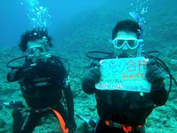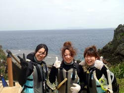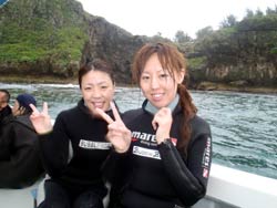 おぬし最初は波にやられそうでくじけそうになったけど、潜ってみたらキレイで諦めなくて良かったです。青の洞窟も魚もせいやっちもゆーきさんもちょーいい感じ〜!!OK〜!!また来たいです。ありがとうございました。 ぼっちゃん:親切丁寧に教えていただいてとても楽しかったです! |
