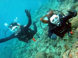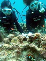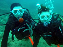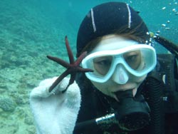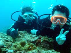 まいど〜ひろあきです!!今日で4月も終わりですね☆明日からはあっという間に5月に突入です!!今日は砂辺で特上スペシャル体験Cコースで関東から遊びに来てくれたひろちゃん&あずちゃんと潜ってきました☆海は貸切でがっつり潜ってきましたよ〜^−^とても上手に潜れた2人と「ニモ」ことカクレクマノミを見たりソフトコーラルのお花畑を見たりヒトデと一緒に記念撮影をしたり・・・砂辺の海を満喫してもらいました^−^ ひろちゃん:最初どーなるかと思いましたが、海に入ってからスムーズに?できて楽しかったです。沖縄でスキューバダイビングをする時はまたお願いします。 あずちゃん:HAPPY TIME☆久し振りのダイビングでわくわくしながらもドキドキの気持ちでいっぱいでしたが丁寧なレッスンとひろあきさんのSMILEでとっても楽しく過ごす事ができました^−^夏に沖縄くる予定なので、今度は青の洞窟ツアーにチャレンジしたいです!!!本当にありがとうございました!!☆ こちらこそありがとうございました!また沖縄の海で待ってま〜す☆ |
