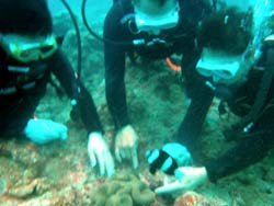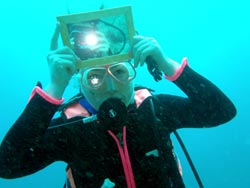 こんちゃー。タクです。今日の夜はナイトダイビング・・・。とゆーことで、本日到着のうっちー&えりちゃんの2人と一緒に行ってきました♪昼間は透明度が悪いとのことだったので〜、用心深く、三人ともぶつかっちゃうくらいくっついて泳ぎました(笑)うっちーは初めてだったので、緊張してましたが、えりちゃんは何度か経験していて楽勝でしたな^0^途中からはぜんぜん慣れてきた2人と、エビや寝てる魚、フグ等々・・・色々見てきました〜★昼間とは違う景色で面白かったでしょー!!最後は皆でライトを消して、夜光虫を見ました。でも!えりちゃんはフライングして、「最後に見ましょうね」って言ったのに笑)ダイビング始まってすぐに手をブンブンと・・・。でもキレイに見れて良かったです^0^また行こうね!! |