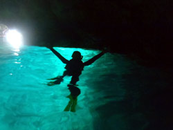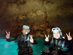 はいさ〜い!!あっ…こんにちわJackです^^☆本日2発目は、沖縄到着直後に急遽遊びに来てくれたお2人です!!アキオさん&ヨシタカさん!!2人はライセンスも持ってると言う事で説明もスムーズ!!即海に向かいました!!体力にも「それなりに」(笑)自信があると言う事だったので行きも帰りも泳いで行って来ました!!たしかに2人ともスイスイ泳いでましたね!!しかもマイカメラもお持ちで本格派!!以前にも青の洞窟に行った事があったらしいのですが、その時はドン曇り&透明度も悪く、洞窟が青くなかった!!との事でリベンジ戦です!!本日はキレイな洞窟が見れたでしょうか!?感想いただいたので載せます!! アキオさん:青がキレイに見えて良かった!! ヨシタカさん:沖縄到着早々、空港から当日予約ですぐエントリー出来て良かったです。青の洞窟、あっと言う間でした。他よりリーズナブルでGoodで良かったです。ありがとうございます。 |