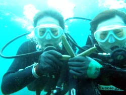 はいさい!今日の朝一体験ダイビングニモに会いに行こうお花畑体験ダイビングに参加してくれたのは、愛媛県から遊びに来てくれた、仲良しカップルそうき君としずえさんです。しずえさんは少し緊張気味でしたが、ゆっくりと陸での呼吸練習でとっても上手くなりました。少し水中寒かったようですが、泳いでる姿を水中ビデオでとったり、写真を撮ったりニモや青ヒトデなんかもみれました。餌付けの時は一生懸命捕まえようとしている姿が笑えました。そんな2人からコメントをもらいました。 しずえさん☆「初めての沖縄!初めてのダイビング!!緊張したけど、とっても楽しかったです〜〜!!TOMOさんありがとうございました。☆SHIZU」 そうきくん☆「めちゃくちゃ感動した。ニモもかわいかった。TOMOさんとの出会いに感謝です。SOUKI」 です。コメントありがとうございます。また、沖縄にバブルボックスに遊びに来てくださいね。待ってます。その後のちゅら海水族館は、どうでしたか?しっかり残りの沖縄を楽しんでくださいね。 |