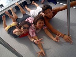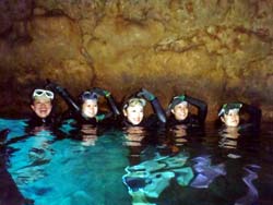 さー、本日二組目の飛び込み参加です!!同じ専門学校の同級生の5人組が参加してくれました☆海況がワッショイでしたが、皆で笑いながら洞窟へ〜!洞窟の中では、タイミング良く貸切でした。いい時期に来れて良かったね^0^ユラユラしながらもエサあげしたり、波に揺られてアトラクションみたいな感じで楽しかったね!明日帰りだけど、飛行機大丈夫かな??また機会があれば、次回はダイビングに挑戦してみてね♪最後に感想を載せます。 フク☆台風の接近で、風波が荒かったけど、青の洞窟はサイコーでした^0^ ハタ☆あいにくの天気でした。「それでも洞窟は青かった!」 よね☆とてもキレイでした。タクさん、たくさんありがとう なる☆海のキレイさに感動!!本当に来て良かったー。 かな☆めっちゃキレイだった!!ほんまに楽しかった。ゲロぴーしそうだったけど・・・(笑) |