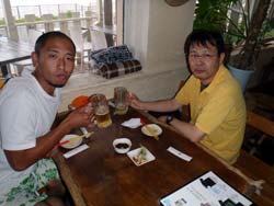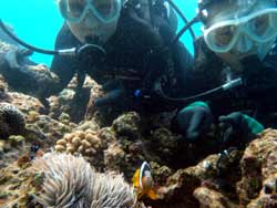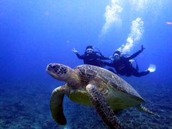 はいさい!本日、10時30分から体験ダイビングBコース、ニモに会い行こうに参加してくれたのは、加藤さんご夫婦です。2人ともかなり緊張されていましたが、ゆっくりと陸での練習と浅い場所での練習で、ばっちり潜ることができました。水中では、光が差し込み、餌付けでもスズメダイがいっぱい遊びに来てくれました。がんばって泳ぎ、ニモに会いにいきましたよ!!可愛かったね〜〜!!一緒に写真をたっとり、水中ムービーを撮影したり、しっかりと沖縄の海に潜った証拠写真をいっぱい撮りましたよ!!力が入ってい忠さんも浅場での練習をしてからは、スイスイと自分で手を使って泳いでいましたね。明美さんも練習してきた甲斐があり、初めから上手かったですよ。深い場所を見たときは少しドキドキしたようですが、かなり深いところまで遊びにいけてよかったですね。また、遊びに来てくださいね。青い海と空の下でまってますよ。そんな仲良し夫婦のコメントは。。。 「初めてのダイビングで不安でしたが、インストラクターの方が親切で楽しく体験できて満足致しました。ありがとうございました!」 |