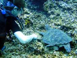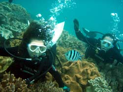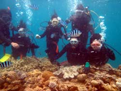 さーさー、いい天気になりました、沖縄!!!今日はボートで体験ダイビング担当です♪今回のゲストさんは〜、シンスケさん&ナツキさんのお2人☆あだ名はシンちゃん&なっちゃんの決定!!笑)2人ともダイビング経験有りだったので、なんとなく思い出しながらの練習(笑)海に入ってもまったく緊張せずに、スイスイと!魚がドッサーって寄ってきて写真がほとんど魚だけになってました^0^念願のクマノミも見れてハシャいでたね(笑)次回はライセンスかな??待ってまーす。あ、感想も載せますね♪ なっちゃん☆ちょっと不安だったけど、たっ君が親切、丁寧に教えて、なおかつ引っぱっていってもらったので、とても楽しむことが出来ました。ぜひまた一度訪れたいと思います。本当にありがとうございました。 しんちゃん☆感動した。スノーケルよりダイビングの方が絶対面白い!ガイドの人も親切で面白かった。また今度沖縄来るときも必ず行きます。 |