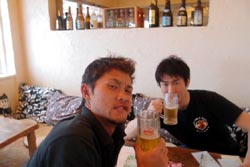 お、今日は晴れてきましたな、沖縄!!さて本日は、俺の地元の名護に移住した・・・いや、いつのまにかしてたチバちゃんが遊びにきてくれました〜(笑)10カ月ぶりのダイビングで、150本ダイバーなのに緊張してました^0^んで、一本目はリフレッシュで砂辺へ。まー潜ってしまえば、よよいのよいって感じで見事な泳ぎっぷりでした☆しかもエアーの減らない事!!ちゃんと吸ってるか心配でした(笑)そんな低燃費なチバちゃんは、以外にもエビが好きだそーで。ニセアカホシカクレエビを見ると、「おぉ!」って声が聞こえました(笑)そして何と言っても今回は、チバちゃんに撮影係りをお願いして、ユウキと俺で、バブルリングをミックスさせる大技に挑戦!!!え?結果??・・・ユウキに聞いてみて(笑)とりあえず今回も、3本とも50分オーバーのロングダイブになりましたとさ♪さ、飲もうか!!! |