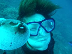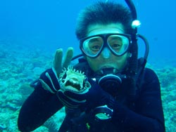 本日2組目の体験ダイビングを担当したのは、ぶらり沖縄一人旅中のさなえさん!!初ダイビングに挑戦です☆説明の時からテンションが高く(笑)あっという間に水中世界へエントリーできました☆水中にある物すべてに興味があるようでサンゴや岩や魚を頑張って触ろうとしている姿が面白かったです^−^途中からは1人でグイグイ泳いで餌付けや水中遊泳を楽しみました☆さなえさんのコメントです。 さなえさん:初ダイビング!!これはヤバイです!感激・感動を通り越してしまいましたが、なんとか戻って来ました。。初だし、1人だし・・・で不安だったけど、とぉーっても優しく&ゆっくりじっくり教えて頂けたので分かりやすくて不安からの→期待からの→楽しさいっぱいの海中timeを満喫してきました。(あ、イケメンすぎて困りました。)楽しすぎて時間が「あっ!!!」という間だったのでまた2回3回、いや、100回200回でも潜りたいです☆そして、次こそはニモを連れて帰ります。魚もその場で食べれる様に頑張ります!!(fight)今日はこんなに楽しい1日をありがとうございました!優しくておもしろいお兄さん達やお姉さん、魚さん(特にニモさん)サンゴさん、沖縄の海に感謝です^−^また沖縄に来た時はぜぇーったいに「バブルボックス」さんで海とお友達になりたいです。本当にありがとうございました!!ニモ☆☆ また沖縄に来た時は是非是非遊びに来てくださいね!!みんなで待ってますよ〜〜☆☆ |