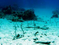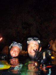 はいさい!!ひろあきです^−^今日は久しぶりに沖縄本島最北端の辺戸岬に行ってきました☆一緒に行ってくれたメンバーは昨日から引き続いてのワタナベさんです!車を走らせること約3時間☆到着です。海は若干波がありましたがメインの辺戸岬ドームからエントリーです!!今日は透明度が最高!!そしてなにより魚がたっくさん!!幼魚が元気よく泳いでくれました。エアドームは相変わらず神秘的な雰囲気で楽しめました。穴を出た後は巨大なイソマグロのサプライズ!!10匹〜20匹は泳いでいました。そして僕達の目の前を悠々と泳いでくれました。二本目はバンタ!前半は深場へ行ってハゼ探し☆でもその前にスミレナガハナダイがうようよ泳いでいたのでしっかりカメラに収めてもらいました。肝心のハゼはホタテツノハゼのペアを発見しましたよ〜☆今日は初辺戸岬のワタナベさんにコメントを頂いています。 渡辺さん☆ 今日は辺戸岬までロングドライブお疲れ様でした。 船酔したとは言え、いつものケラマと違った地形や魚影の濃さには十分に満足出来るものでした。 特に水中鍾乳洞の鍾乳石には感動しました。 機会があれば又辺戸岬へのダイビングを企画して下さい。 |