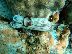 はいさい!!今日はビーチファンダイブを担当しました☆一緒に潜ってくれたのはお久しぶりのやっさんです^−^砂辺はバシャバシャしていたのでマエダ岬へ移動して潜ってきました。水面近くは少し濁っていましたが中に入るとなかなかの透明度!!元気な魚たちをみながらのんびり泳いできました^−^今日はウミウシがたっくさんいてカメラを持っていたやっさんはバシバシ写真を撮っていましたね☆二本目は洞窟へ!!人も少なくライトで洞窟の中を照らしながら泳いできました。今日は少し酔って2ダイブで終了でしたがまたフラッと遊びに来てくださいね☆ やっさん:久しぶりのダイビングでとても楽しみにしていました。前日の三線のコンクールで良い評価を受けた事もあり、良い気分で臨めました。3ダイブのつもりが、酔ってしまって2ダイブに変更してしまったのが残念です。ひろあきさんが色々なウミウシを見つけてくださるので、良い写真も取れました。カメラ素人には動きが鈍いウミウシにかぎりますね。また参ります。 |