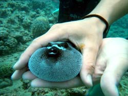こんにちわJackです^^☆今日は飛び入りで来てくれたヒロちゃんと砂辺でスノーケルをしてきました♪浅場のニモちゃんを覗きに行って、ソフトコーラルも、たっぷり堪能してきました。餌付けの時のヒロちゃんは最高でした(笑)大興奮!!!たくさん泳いできましたね♪感想頂いたので載せます!! ヒロちゃん:お魚がたくさん、人なつこくてキレイで大感激!!お姉さんも優しくて楽しい時間でした。ありがとうございました。また来ますね。 |