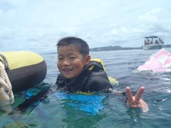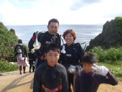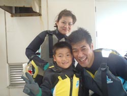 はいさ〜〜い、せーやです!!今日もいい天気。暑いくらいです、、、汗!!でもこれが夏!!朝から一緒に潜ってくれたのは永井さんファミリー☆ワンパク坊主2人は練習の時から余裕でした!でも雅人くんちょっと耳抜きに苦戦しつつ浅いとこで一緒に写真♪お父さんお母さんもなぜかとっても上手^^ちょっとだけ入るまえにドキドキしたぐらいだったね!みんなから感想を頂きました! お父さん&お母さん:はじめはドキドキでしたが、ご指導のお陰で、楽しく、安心して潜ることが出来ました。魚がすごい!色々な事で子供たちがうれしそうに泳いでいるのが、すごく嬉しかったです。これもインストラクターの方のおかげです。ありがとうございました。 将吾&雅人:楽しかった。特に、クマノミを見るところや魚がえさを食べるところが! |