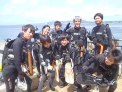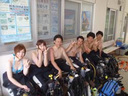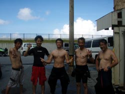 はいさ〜〜い、せーやです!!今日もいいてんきですね〜〜☆そんな中今日は濃いメンバーで潜ってきましたよ!!一緒に潜ってくれたのは、今日OWラストのオーシャンとあっちゃん、和田っち、たかさん、藤本さん、サウスさんの全員男と言う事で「男祭り」でした^^みんなそれぞれ自慢のオリンパスカメラを持っており、水中でそれぞれ写真をパシャリ☆生物を見つけた時もみんなで順番に撮っていました!透明度があまり良くなかったですが、お花畑の上をまったりのんびり泳いできました!3本目はマエダに移動!ぶーーん!真栄田ではあっちゃんと和田っちとおーっしゃんの3人と行き人がいっぱいの青の洞窟に行って来ました。浅瀬はすごく魚が多くベラやスズメダイ、チョウチョウウオなどがとっても群れて可愛かったです!またみんなで行きましょい。今日はBBでBBQだああ!! |