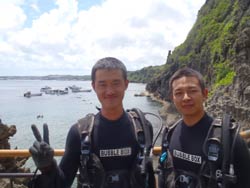 ハイサイ!本日は青の洞窟体験ダイビング担当のともです。遊びに来てくれたナイスなカップルは、リュウジさんとゆりちゃんさんです。少し緊張気味の2人でしたが、ゆっくりと練習をして海へ、足の立つ所での練習では少しずつリラックス出来ました。透明度もよく魚がいっぱい寄って来てくれました。そんな2人のコメントは! 竜二さん:最初は怖かったけどTOMOさんが優しく教えてくれたので楽しくダイビングする事ができました。最高でした。ありがとうございました。 祐理さん:初めて見る光景ばかりで本当感動的で全て最高でしたぁ☆ともさんの指導のおかげで、きつい時もなんとか乗り越えることができ楽しくダイビングすることができて本当に感謝してます☆ダイビング最高!ともさん感謝!ありがとうございました☆ |