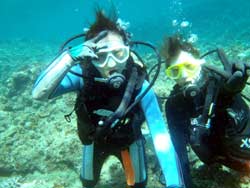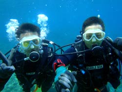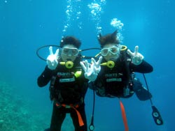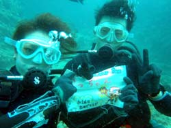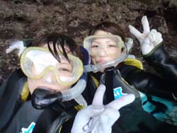 7月11日晴れ青の洞窟体験ダイビングをやってきました。遊びに来てくれたのは、ケイコさんとまゆみさんです。ちゃきちゃき娘?2人組みです。最初はドキドキしていたようですが、練習終了後はめちゃめちゃ上手かったですよ。また、遊びに来てくださいね。待ってます。二人のコメントは? ディアーTOMO、最高の思い出になりました。!!センキュー!まゆみより 青の洞窟は本当に青かった、感激!次はバブルリングをやってみたい〜〜!!けーちゃんより コメントありがうございます。最高の思い出になってよかったです。次回はバブルリングのやり方教えますね!