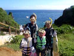 はいーーー。せーやです!!今日は午後からまさかのマエダ岬クローズになり、裏のビーチでおよいできましたよ♪一緒に泳いでくれたのは、千葉県からお越しの松谷さんファミリーです!!みんな初めてのシュノーケリングでしたが佳奈ちゃん、佳汰くんはとっても上手で特に佳汰くんは顔を水から出すことがなくずっとずーーと顔浸けてたね^^お父さんお母さんも上手で2人を気にかけながらもみんなで写真撮ったり魚をみんなで探しましたね♪今度は青の洞窟に行こうね☆ |