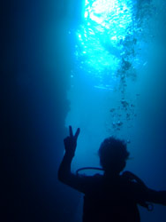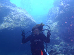 続きまして午後からの参加で、沖縄一人旅行中のアっくんとマンツーで洞窟へ行ってきました。初めてダイビングでしたが、かなり上手で最初から最後まで自分で泳いでました(笑)ライセンスもってる人みたいでした〜♪次回はライセンス取りに来て下さいね(^^)感想も載せていきます。 あっくん☆初沖縄です。沖縄と言えばダイビングと言う事で、どうせなら青の洞窟も見たいと言う事でチャレンジしました。話には聞いていたけど本当に別世界で魚もよってくるし洞窟もめちゃくちゃキレイで最高でした。海の世界だから息苦しくなったりするのかと思ったけそんなこともなく快適な旅でした。今度はライセンスを取ろうと思います。ありがとうございました。 |