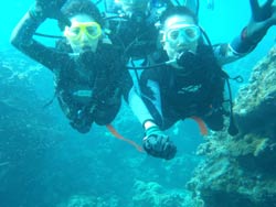 まいど〜ひろあきです!今日もまだ台風のうねりが残っている沖縄地方です。。今日は本島沖体験ダイビングを担当しました!今回遊びに来てくれたのはミタさんとトモちんのお2人です^−^ミタさんは始めてのダイビングに挑戦でしたがとても上手に2人ともエントリー出来ました。洞窟の中はタイミング良く人が誰もいなかったのでゆっくり青の洞窟を満喫する事ができました☆お2人のコメントです! ミタさん:今日は初めてのダイビングでとても楽しかったです。耳抜きも何とかできてきたので又チャレンジしたいです! トモちん:今日は3回目のダイビングでしたが今までで一番楽しかったです。耳抜きを手伝っていただきとても楽になりました。クマノミ家族がかわいかったです。又来年も来たいと思っちゃいました!Thank you |