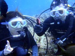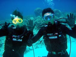 本日ラストのお客さんは〜、仲良しクシゲさん姉弟のお2人です(^^)初ダイビングで、お姉ちゃんはド緊張(笑)でも水中はぜんぜん上手だったよ☆最後は2人とも自分で泳げたし、一発芸も喜んでくれてサンキューです。次回は家族全員で参加してみてくださいね^0^最後に感想を載せまーす。 くっしー☆沖縄旅行の中で一番やりたかったのがダイビングだったのですごく良かったです。最初は耳抜きとかうまくできるか心配だったけど始めってみたらそれどころじゃなくらい楽しかったです。海はすごく青くて、魚もいっぱいいて面白かったです。たくちゃんがすぐ近くに居てくれたので安心して楽しめました。ありがとうございました。 りょうちゃん☆頭がクラクラ。でも沖縄の海とてもキレイで感動しました!!インストラクターさんもイケメンで楽しかったです。また来年も来たいです。ありがとうございました。 |