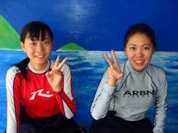 ☆どーもともです。本日飛び込みでl青の洞窟体験ダイビングに参加してくれたのは、福岡からあきちゃん、りさちゃんです。元気100倍のりさちゃんは最初からばっちりなんでも大丈夫でしたが、あきちゃんはかなり緊張気味でしたね。笑!最初は少し恐がっていましたが、信じてくれたのでばっちり海に潜れるようになりました。それも呼吸が落ち着くとなかなか上手くもなりました。餌付けの時は魚の多さと大きさにびびってましたが・・・いつもいつもマスククリアーをしていたりさちゃんは、まじ上手かったです。今日は、遊びに来てくれてありがとうございます。また遊びに来てね。みんなで潜れてよかったね。そんな2人のコメントは< あきちゃん「泳ぐのが苦手で初めての経験でしたが、トモさんのお陰で楽しく泳ぐ事ができました。また遊びに行きたいです。」 りさちゃん「難しそうと思ったけど、すんなり覚えてずーーっと潜る事ができて楽しかった^^本当に来てよかったです。」 |