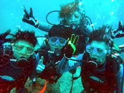 いい天気〜〜沖縄ワッショイ!!!タクです。今日は久しぶりに砂辺で体験ダイビングですよーー。まず最初のお客さんは〜、服部さんファミリーの4名です(^^)カレンちゃんと、ハナちゃんは初めてダイビング☆お父さんお母さんは20年ぶりのダイビングです!!子供たちが心配でしたがぜんぜん問題なくて、逆に一番大丈夫そうなお父さんが耳抜きに苦戦・・・。でも途中からは合流できて、皆でニモにも会えましたね〜〜♪皆でワイワイ潜れて良かったです。最後に感想を載せますね。 服部さんファミリー☆本物のニモに会えてよかった。親切、楽しかった。エサをあげてないときも当たり前にように魚が寄ってきて嬉しかった(^^)親切に教えてくれたから初めてだったけど楽しかった。魚がたくさん近くにきてくれて楽しかった!! |