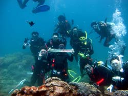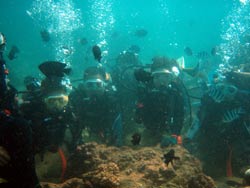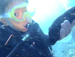 本日ラストは、大学生の男5人組みと一緒に男祭りです(笑)皆初ダイビングでしたが、普通に上手でした(笑)波がパシャパシャしてましたが、全員が無事に潜れて良かったです。洞窟までいけたし、皆で集合写真も撮れました。途中、寒くなったり、平泳ぎで隣の人の顔をたたいちゃったり、色々忙しかったけど、楽しく潜れてなによりです。そんなチームのリーダーから、気合の入った感想です・・・。 リーダー☆ダイビング最高でした!・・・それは否めん!! |