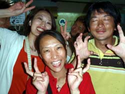 今日は水納島へいってきました〜〜〜〜〜!!!!雨が降り、雷が鳴り、風が吹きまくりの本日、たくJAPAN出陣です☆メンバーの紹介です。最強3トップ関谷ファミリーのアキ君、コバちゃん、なつき&1年ぶりの少し寝むそうなデカさん&カメラの設定を間違えてたユカちゃん。このメンバーで水納島です♪まず一本目は水納島へ。ポイント名は灯台下2。砂地のポイントで、エントリー直後はものスッゴイ濁ってて透明度3mくらい(笑)皆でくっつきながら進んでくと、今度は20mくらい抜けて一気にキレイになりました(笑)カメラ持ってる人はバシバシ撮って、持ってない人は砂地でまったりと・・・。エキジットも透明度3mの中を泳ぎながらでした(汗)さ〜〜二本目は瀬底島。濁り無し(笑)ポイントはキャメル。ラクダって意味です。エントリー前、ユカちゃんから「エビが見たい」って突然のリクエストが出たので(笑)、見せてやりましたよ!イセエビどーーーん!!!オレが一番ビックリしたんすけどね(笑)なんてったって俺も初めて潜るポイントでしたから〜〜〜(爆)洞窟の中で皆ゴチャゴチャになったけどね♪お昼は皆で食堂探し。最初のお店は閉店・・・次の店も閉店・・・最終的にはちっこい弁当屋さんでメシ買って休憩所みたいなところで皆で!!三本目!!瀬底島のラビリンス。大好きなポイント☆洞窟に入り横穴入り、せまいクレパスを一列になってスルスル〜〜っと。出口で挟まる人もいましたね(笑)そんな迷路みたいなポイントがオレは好き・・・。はい、最後は晴れて暖かく締めることができました。じゃ、今日はしゃぶしゃぶと焼肉なので、がっつり食べちゃいますか!!! |