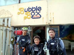 はい、どうも。タクです。今日は友達が遊びに来てくれました!クロちゃん、あさみちゃん、なおみちゃんのちゃんトリオです〜♪皆初のダイビングで、クロちゃんが一番ド緊張(笑)頑張って頑張って、時間かかったけど皆で集合して写真も撮れたね!!あさみちゃん、なおみちゃん、はしゃぎすぎ(笑)皆からいっぱい感想もらったから載せます。 なおみん☆初めてダイビングをして、初めて見る海の中はすごかった…なにもかも初めてすぎて時間はあっという間にすぎて、今日この時間をダイビングで過ごせて良かったです。バブルボックスさんのスタッフさん方が、とても優しくて素晴らしかったです。お姉さんお兄さんありがとうございました。次もバブルボックスさんと一緒に潜りたいです! くろちゃん☆楽しかったです!もぐれたことに感動!!くろちゃんに感謝!!またするっ!!世界が変わったーーー☆ あさみん☆最初めっちゃ緊張しちょったけど海の中に入ってしまえばパラダイス☆キャーキレー楽〜♪海の中の方が、ラクチンでした!!女子三人で写真もとれたし、一緒にもぐれて良かったです☆あ、らがとうーバブルボックス サイコー☆ |