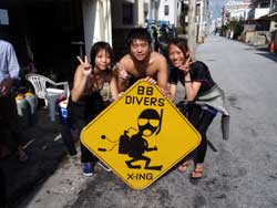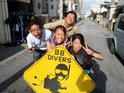 こんにちはJackです^^☆なんと今日は地元の友達親子が沖縄に遊びに来てくれました!!くみこ&なおちゃん&ママ!!ママはライセンスを持ってて5年ぶりと、少しブランクがありましたが久し振りのダイビングです!!くみこ&なおちゃんは初のダイビングに挑戦!!一本目は体験コース!!なおちゃんはドキドキで一回レギュが外れるハプニングがありましたが(笑)気を取り直して潜っていきました!!クミコは最初から基本放置(笑)なんの問題も無し!!ママも少し耳抜きに苦戦していましたが、なんとか大丈夫で、まずは皆でニモに会いに!!サンゴのお花畑も通って餌付けをしてきました!!二本目は、フグorハリセンボンを狙って左のお花畑へ!!まずはゴンズイを発見!!スレートに「フグ探そ〜!」って書いた3分後に発見(笑)早かった〜!!さっそく捕まえちゃった♪膨らまして写真とって、その後はコクテンをボールのようにポンポン遊んでました(笑)コクテンちゃんゴメンね!!後半は、みんな自分で自由に泳げて楽しかったね!!なおちゃんリクエストの餌付けもまたやって少し泳いで帰ってきました!!ママはFUNチームと3本目にも挑戦でーす!!いやぁ〜楽しかったね!!クミコのうまさには笑えた!!目離すとどっか行っちゃうけど!!3人から感想頂きました!載せまーす☆ なおちゃん:BBDiversの、ゆうちゃん&スタッフの皆様へ、スタッフのゆうちゃんに会いにはるばる川崎から参りました!!ダイビング初心者なので最初はドキドキしていましたが優しく丁寧に教えていただいたおかげでとっても楽しく潜ることができました♪Happyな時間をありがとうございました^^ゆうちゃん&せうやくん最高!!!!! ママ:5年ぶりのダイビング1本目ちょっぴり不安でしたが、せいや君のおかげで不安なく潜ることができました。ゆうちゃんの、たくましさも見れ親子3人楽しくダイビングができハッピーでした。今回のダイビング、ゆうちゃんアナタがいたから今回来ることができました、ありがとうね!また来年くるので、ゆうちゃん&スタッフの皆様よろしくお願いします。ありがとうございました。 くみこ:スタッフゆうちゃんに会いに8年ぶりに沖縄に参りました!!初めてダイビング体験すごく楽しかったです!!天気も晴れてフグにも会えて嬉しかったです^^☆スタッフの皆様も優しく話しかけてくれ、色々な話が出来て良かったです。また来年の夏に3人で来まーす☆☆ |