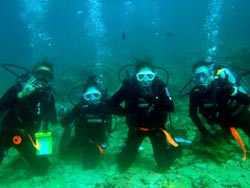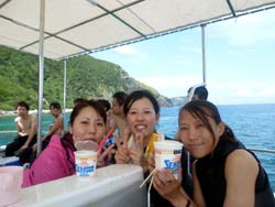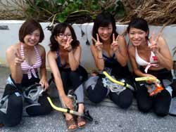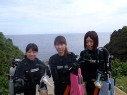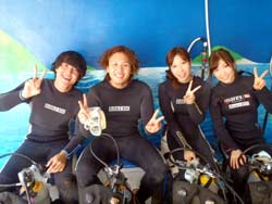 まいど〜ひろあきです!!本日ラストの組は現在海外から日本に留学しているコウさん・チンさん・カクさん・ショウサンの4名でした☆みんな初のダイビングにちょっと緊張気味でしたが足の立つところでじっくり練習することができたので無事水中世界へエントリーすることができました!心配していた耳抜きも無事成功して水深10メートル付近まで泳ぐことができましたよ〜☆^−^もちろん青の洞窟もみんなで見ることができました!洞窟を出てすぐに小さいミジュンの群れに遭遇!!僕らの周りを川のように体を反射させながら泳ぐ姿は思わずみとれてしまいました^−^皆さんからのコメントです!! スタッフのコメントは少々お待ち下さい><。 かくさん☆海の中ほんとにきれい!今日は楽しかったです。 こうさん☆お疲れ様です。今日の体験は本当によかったと思います。 ちんさん☆海に美しくて魚はキレイだし、いっぱいだわ。 しょうさん☆もし機会があればまたきまぁーす!! |