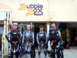 はいさ〜い★今日はバブルボックスは大賑わいでした^−^まずは海外からのお客様総勢20名の体験ダイビングとシュノーケル!!今日の砂辺の海は絶好調!!!しかも天気も快晴でめちゃくちゃ気持ちのいい一日でしたよ〜☆みんな説明をしっかり聞いてくれたのでスムーズにい海に入る事ができました!!朝一は魚の食いつきにみんなびっくりしつつも笑顔でエサやりを楽しんでいました^−^それから透明な海をスイスイ泳いでソフトコーラルのお花畑を見てきました☆初めての沖縄の海楽しんでもらえましたか〜?また沖縄に来たときは是非海遊びしてくださいね!!スタッフ一同お待ちしていま〜す☆★ |