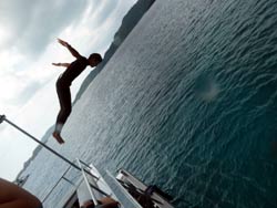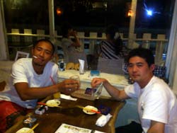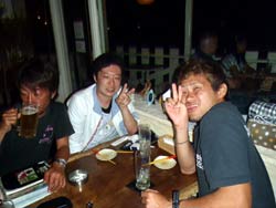 ☆さ〜〜〜〜て今日はジンベイです!!!ジンベイを倒しにいきます。そんなメンバーは昨日に引き続きの講習チームの7人と松林先生の8名です。でも今日はFUNダイビング!!一味違ったダイビングだぜぃ。青の洞窟も攻める予定でしたが、海況がアレだったので次回持ち越し!!!なので、講習でお世話になった砂辺でFUNダイブ。透明度抜群で20mはあったな〜〜♪海況もベタ凪。皆で荒らしてきましたーーー(笑)フリー潜降もだんだんと形になってきてコジマン以外はスムーズに降りれました(笑)カクレクマノミやウミウシ、コクテンフグもGET。相変わらずアホで可愛いやつです。最後は中層を泳ぎながら、お花畑へ〜〜☆キレイだったね。皆サンゴの感触にびびってたけどね(笑)のんびりな一本でした〜。さ〜て、ラストダイビングのジンベイ!!漁港でビデオを見て、ジンベイの倒し方の講習を受け、いざ!!!エントリーしたらすぐにヤツが泳いでました。デカイぜこんちくしょう!!網の中に入ったら皆で網につかまってみんな干されるかんじでジンベイの近くまで・・・。近いなんてもんじゃないね、ぶつかってたね(笑)でもよかったね!あんなに近くで見れるのは、ライセンス頑張ったご褒美だね(^^)でも一番楽しかったのは、その日の飲み!色々話聞いてたらすんごいことがわかっちゃったりして、笑いっぱなしだった☆ありがとう!!また潜ろうな。待ってるぜ♪ |