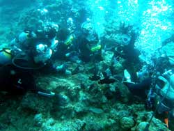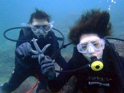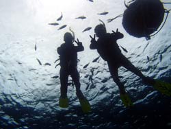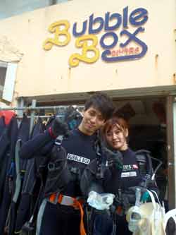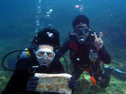 はいさい!!ひろあきです!!今日は体験ダイビングを担当しました☆遊びに来てくれたのは千葉県からさとくんとともちゃんのお2人★初ダイビングでしたが、しっかりと説明を聞いてくれたおかげでスムーズに水中世界へ入っていくことができました☆^−^フワフワのソフトコーラルをさわったりう○チみたいなナマコをさわったり((笑))2人とも水中世界を楽しんでいましたよ〜☆お2人からのコメントです!! さとくん&ともちゃん:今日はありがとうございました。はじめてのダイビングでしたが、声の通じない水中でも安心して楽しめました。店長さんに丁寧に教えていただいたおかげだと思いました。魚のエサやりの時魚のいきおいが凄かった。帰ったらみんなに自慢します。 |