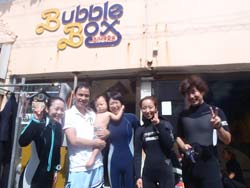 こんにちはJackです^^☆本日1発目は那覇のゲストハウスで仲良くなり一緒に北谷まで来てくれたと言う2人!!ゆきちゃん&もえちゃんです!!もえちゃんは以前にも数回体験ダイビングを経験していて、ゆきちゃんは初のダイビングです!!砂辺は、まだ少し台風のうねりが残っていて浅瀬がゆれていたため2人ともドキドキでしたが入ってしまえばバッチリ!!まずはニモに会いに!!台風で景色がすっかり変わってしまった砂辺ですが変わらずそこに居てくれたニモちゃん達♪ありがとう!!と、ご挨拶に行き、サンゴ畑へ2人とも手を離して泳いでみたりムービー撮ったり、水中でのゆきちゃんの声のでかさには笑ったなぁ〜(笑)水中で超スローで歩いてみたり、パッとユキちゃんの方を見ると静かに気をつけの姿勢で真っ直ぐ立ってたり、もえちゃんもすごく上手に泳いでいましたぁ!!では感想頂いたので載せます!! もえちゃん:BubbleBox、ゆうきさん、ひろあきさん、いや〜今日は楽しかったです!!久々のダイビング。最初は緊張したけど海の中入ったらOKになってよかったー!一緒にいてくれて安心しました!また遊びに来ますね♪ありがとうございました。 ゆきちゃん:本当はダイビングなんてやるつもりなかったけど来て良かった。やって良かったです!!ゆーきさん、ひろさん、もえちゃん、すべての人に感謝!ハイサイ!沖縄大好きです☆☆☆ 以上でーす!!「ハイサイ」の使うとこ違うけど気にしないよぉ〜(笑)また遊びに来て下さい♪ |
