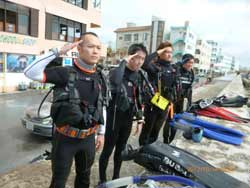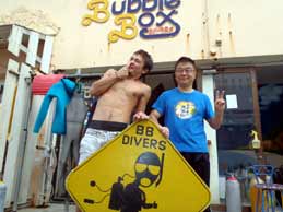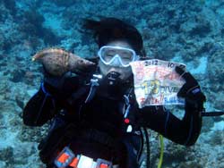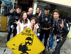Aはいさい!!ひろあきです!!10月の連休も終わってしまいました・・・。なんだか夏がどんどん遠ざかっていくようですが・・><でもこの連休もBBにはたくさんの人が遊びに来てくれてワイワイ賑やかでしたよ〜☆僕はOW講習を担当してました!今回新しくダイバーになったのは名古屋から来てくれた元気な三名!!センジさん・ミツエさん・コウイチロウさんです☆みんな初めてのダイビングでライセンス取得に挑戦です。最初は呼吸や耳抜きに戸惑いスキルも思うように進められませんでしたが・・・みんなだんだんとコツをつかんできて少しづつ自分達のペースで講習を進めていきました。するとだんだん水中にいる事にもなれてきて肺を使った浮力の調節やジャケットの操作もマスターしてきました。そして今日がいよいよ最終日!!!苦手としていたマスク脱着もゆっくりゆっくり自分で呼吸を整えて見事クリアすることができました☆☆ラストは遊びながら泳ぎの練習!!やわらかサンゴやニモやロクセンスズメと戯れてきましたよ〜^−^ということで見事オープンウオーター合格です!!!おめでと〜〜〜〜☆☆☆☆☆パフパフパフパフパフパフ〜☆☆☆☆いや〜ホントに頑張ってくれました!!皆さんのやる気に僕も感動しましたよ〜☆地球の7割は海です!!新しい広い世界をまたみんなで潜って楽しみましょう^−^ホントにお疲れ様でした!! |
